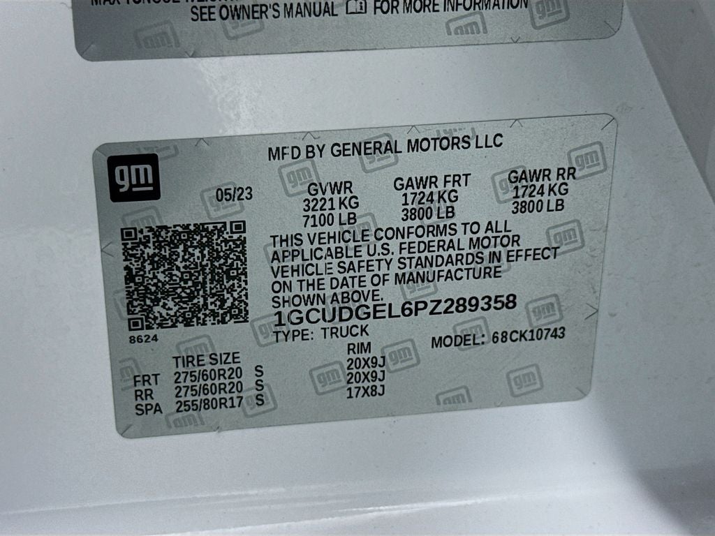 LTZ Convenience Package II: 2nd Row Heated Outboard Seats; Power Sliding Rear Window with Rear Defogger; Universal Home Remote; Adaptive Cruise Control. Z71 Off-Road and Protection Package: Chevytec Spray-On Black Bedliner; All-Weather Floor Liner. Z71 Off-Road Package: 2-Speed Transfer Case; Hill Descent Control; Dual Exhaust with Polished Outlets; Off-Road Suspension; Skid Plates; Heavy-Duty Air Filter. Technology Package: 15" Diagonal Multicolor Head-Up Display; Bed View Camera; Rear Camera Mirror. Preferred Equipment Group 1LZ: Driver Memory; SiriusXM with 360L; Electric Rear-Window Defogger; Theft Deterrent System (unauthorized Entry); Front Rainsensing Wipers; Compass; Heated Steering Wheel; 120-Volt Instrument Panel Power Outlet; Heated Driver and Front Outboard Passenger Seats; Color-Keyed Carpeting Floor Covering; OnStar and Chevrolet Connected Services Capable; Front Rubberized Vinyl Floor Mats; Rear Rubberized-Vinyl Floor Mats; Power Front Passenger Windows with Express Up/down; 12.3" Multicolor Reconfigurable Digital Display; Chrome Mirror Caps; Power Rear Windows with Express Down; Integrated Trailer Brake Controller; Single-Speed Transfer Case; Front Frame-Mounted Black Recovery Hooks; Keyless Open and Start; Auto-Dimming Inside Rearview Mirror; LED Cargo Area Lighting; Bluetooth® For Phone; Remote Vehicle Starter System; Trailering App; LTZ Plus Package; Electrical Steering Column Lock; Trailering Package; Wireless Phone Projection; Up-Level Rear Seat with Storage Package; Standard Tailgate; Front LED Fog Lamps; Steering Wheel Audio Controls; Dual Rear USB Ports (charge Only); Deep-Tinted Glass; 10-Way Power Driver Seat with Lumbar; Electronic Cruise Control; Chevy Safety Assist; Hitch Guidance with Hitch View; Power Front Windows with Driver Express Up/down; Wrapped Steering Wheel; Power Tailgate; 10-Way Power Passenger Seat Adjuster with Lumbar; Outside Heated Power-Adjustable Mirrors; Rear Wheelhouse Liners; Auto-Locking Rear Differential. Chevytec Spray-On Black Bedliner. All-Weather Floor Liner. 275/60R20SL AT BW Tires. **Equipment listed is based on original vehicle build and subject to change. Please co