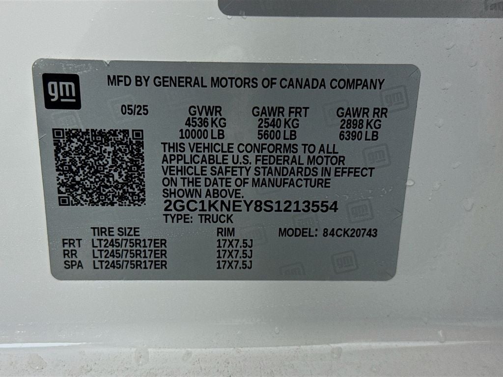 Convenience Package: LED Cargo Area Lighting; Manual Tilt and Telescoping Steering Column; 10-Way Power Driver Seat Adjuster with Lumbar; Front LED Fog Lamps; Dual-Zone Automatic Climate Control. Heat Package: Heated Steering Wheel; Heated Driver and Front Outboard Passenger Seating. Preferred Equipment Group 1LT: HD Rear Vision Camera; Rear 60/40 Folding Bench Seat (folds Up); Durabed Pickup Bed; SiriusXM with 360L Trial Subscription; Bluetooth® For Phone; Heated Vertical Trailering Mirrors; 170 Amp Alternator; Wireless Phone Projection; Standard Tailgate; Suspension Package; 120-Volt Interior Power Outlet; LT245/75R17E AS BW Tires; Steering Wheel Audio Controls; Chevrolet Connected Access Capable; Color-Keyed Carpeting Floor Covering; OnStar Services Capable; 120-Volt Bed Mounted Power Outlet; Power Front Windows with Passenger Express Down; Halogen Reflector Headlamps; Front Rubberized Vinyl Floor Mats; Black Mirror Caps; Rear Rubberized Vinyl Floor Mats; 4-Way Manual Driver Seat Adjuster; 2-Speed Electronic Shift Transfer Case; Deep-Tinted Glass; 17" Machined Aluminum Wheels; Electronic Cruise Control with Set and Resume Speed; Power Rear Windows with Express Down;